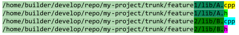 In such view, the end nodes (leaves) will be references. We should not have situations when a string completely coincides with the prefix of another string. This shouldn't happen because we work with files that are unique in the system. We can restore a full string by passing it back to the root of the trie. The search operation in such a trie is directly proportional to the length of the string that we search. There may be problems in case-insensitive file systems. Two different paths may point to the same file, but in our case this can be ignored because this is processed later during comparing. However, in .dfo files, we can still store the original paths that have already been normalized.